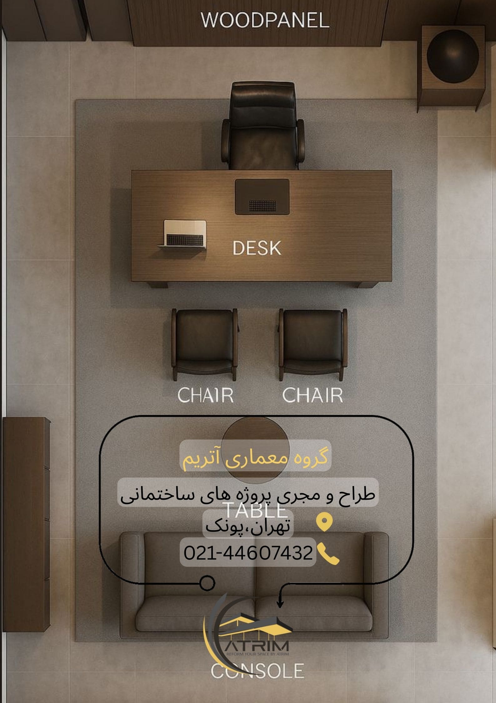 ما در گروه معماری اتریم کنارتونیم تا اتاق مدیریتی طراحی کنیم که هم زیبا، هم کاربردی و هم حرفهای باشد.