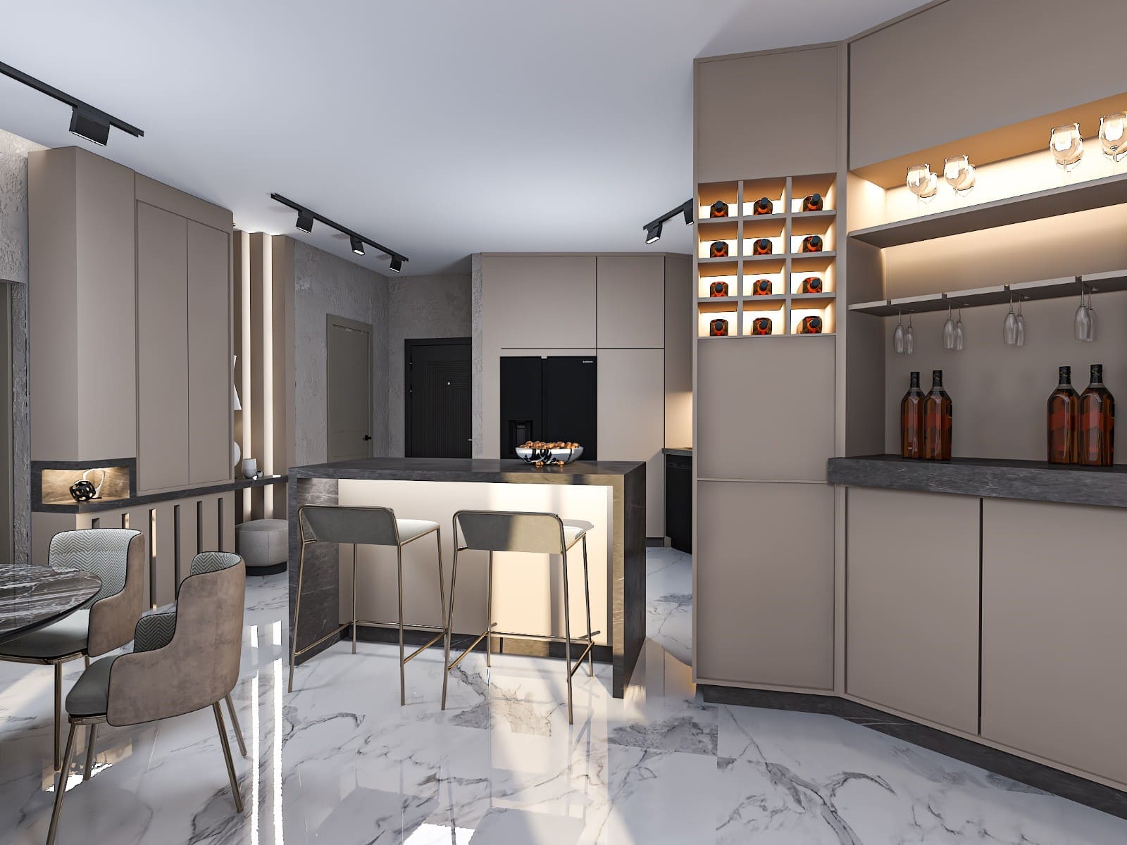 طراحی داخلی این واحد مسکونی با رویکرد مدرن و مینیمال انجام شده؛ ترکیبی از خطوط ساده، متریالهای باکیفیت و نورپردازی هدفمند که فضایی آرام، کاربردی و چشمنواز ایجاد کرده است.